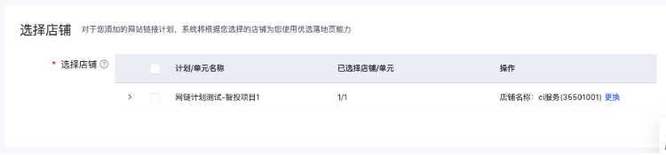 Step3:若生效范围中选择了网站链接计划,需要为计划下的单元选择关联店铺。