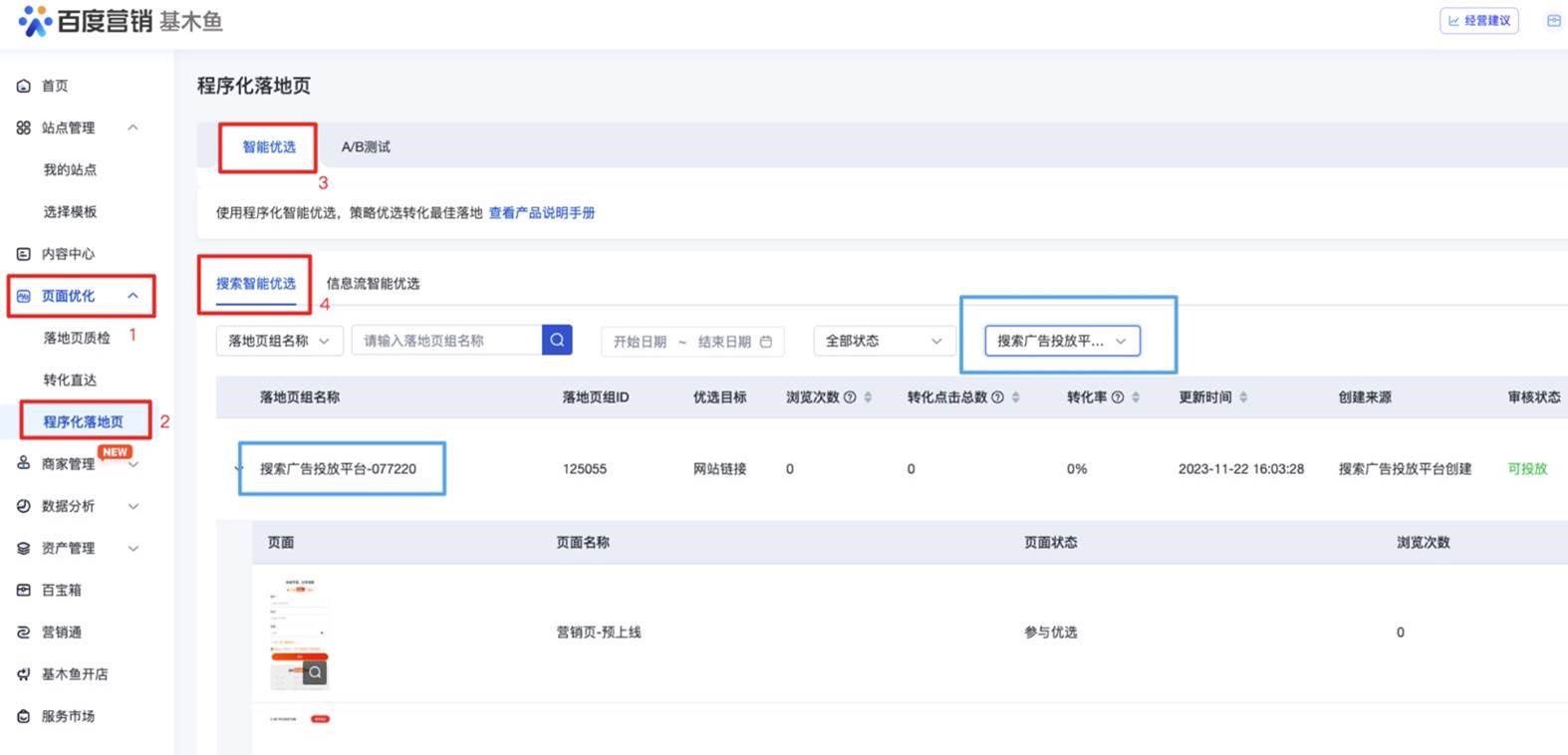 销售线索营销目标支持使用基木鱼程序化落地页组投放—全流量上线