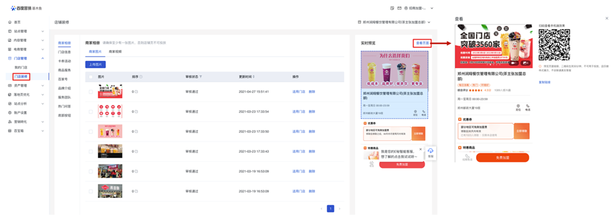 功能入口:基木鱼 – 门店管理 - 门店装修 - 预览区点击「查看页面」- 扫码或复制链接