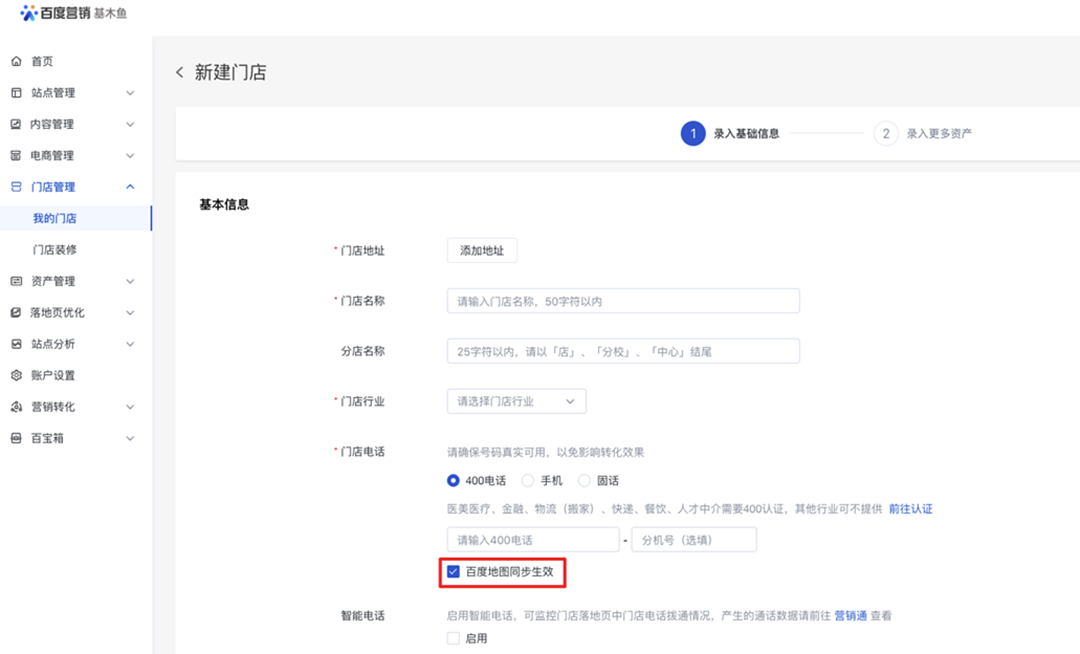 - 功能入口:基木鱼 – 门店管理 - 新建门店或编辑门店 – 百度地图同步生效