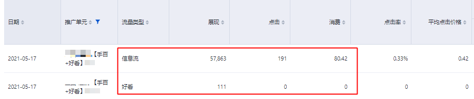 以下图“手百+好看”单元为例,该单元投放百度信息流和好看视频两种流量: