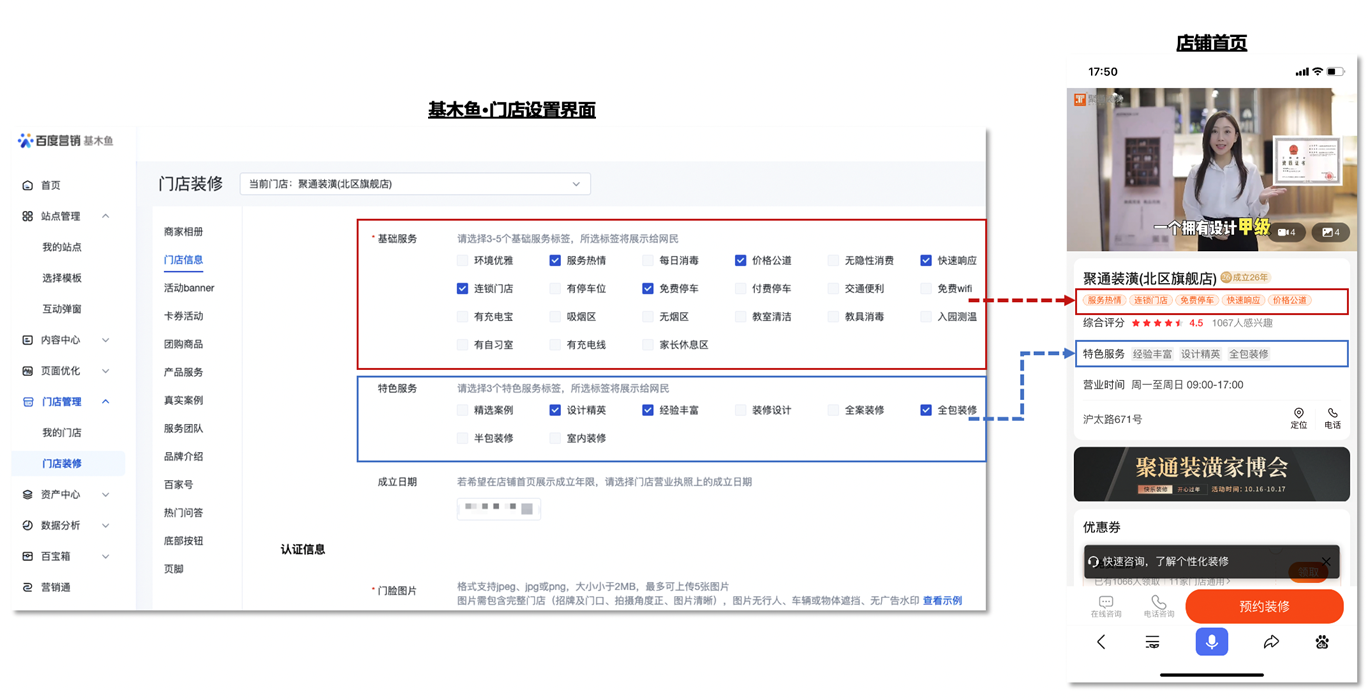 设置路径:我的门店-门店装修-门店信息-基础服务/特色服务