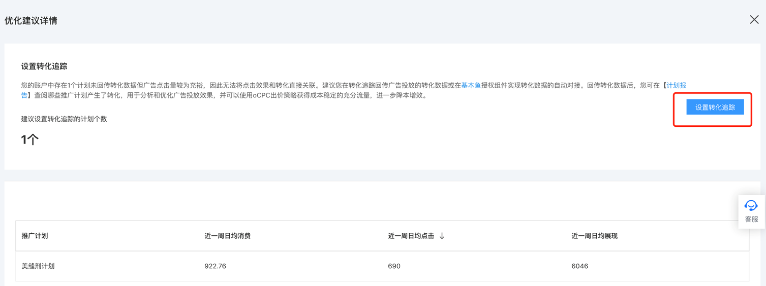当您看到时,说明您的账户存在一些计划点击量较为充裕但未接入转化数据,暂时不能将点击效果和转化直接关联。