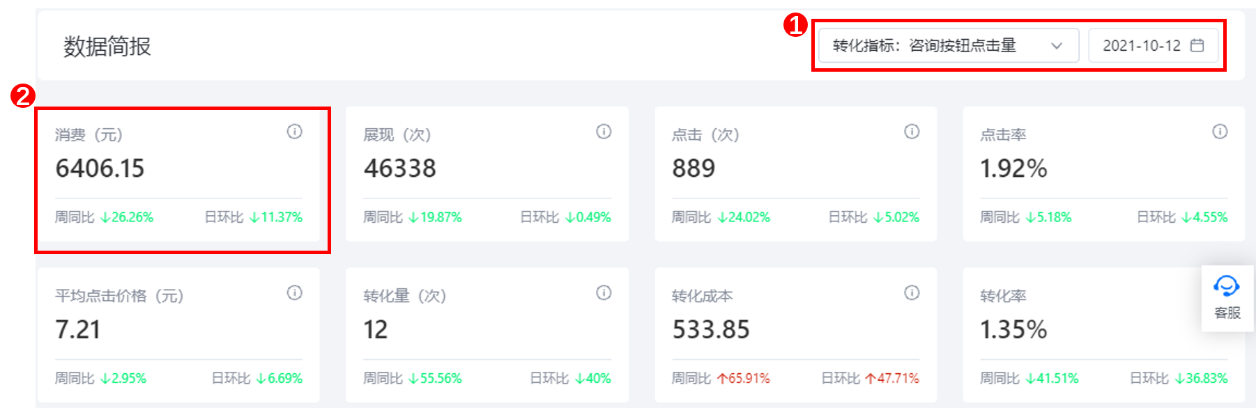 1)顶部重点指标呈现:为您呈现当前账户重点指标表现情况,快速识别哪些指标发生波动: