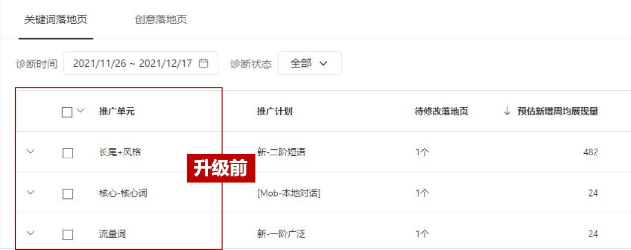 优化中心“提升落地页质量建议”易用性升级-搜索推广
