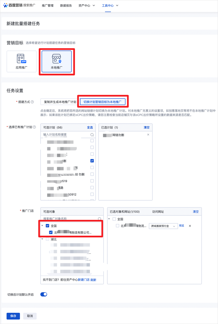 2、投放:强烈建议使用「本地推广批量搭建助手」,将已有计划一键切换为本地推广目标投放惠生活阿拉丁
