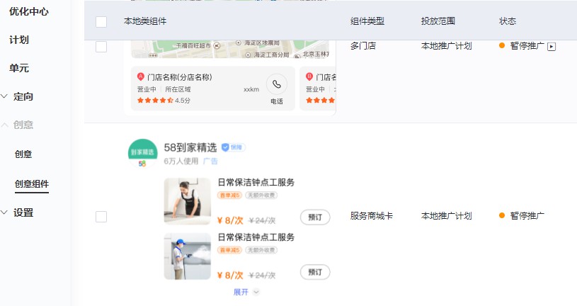 入口2:数据报告->创意报告->创意组件报告,选择组件类型为本地类->服务商城卡