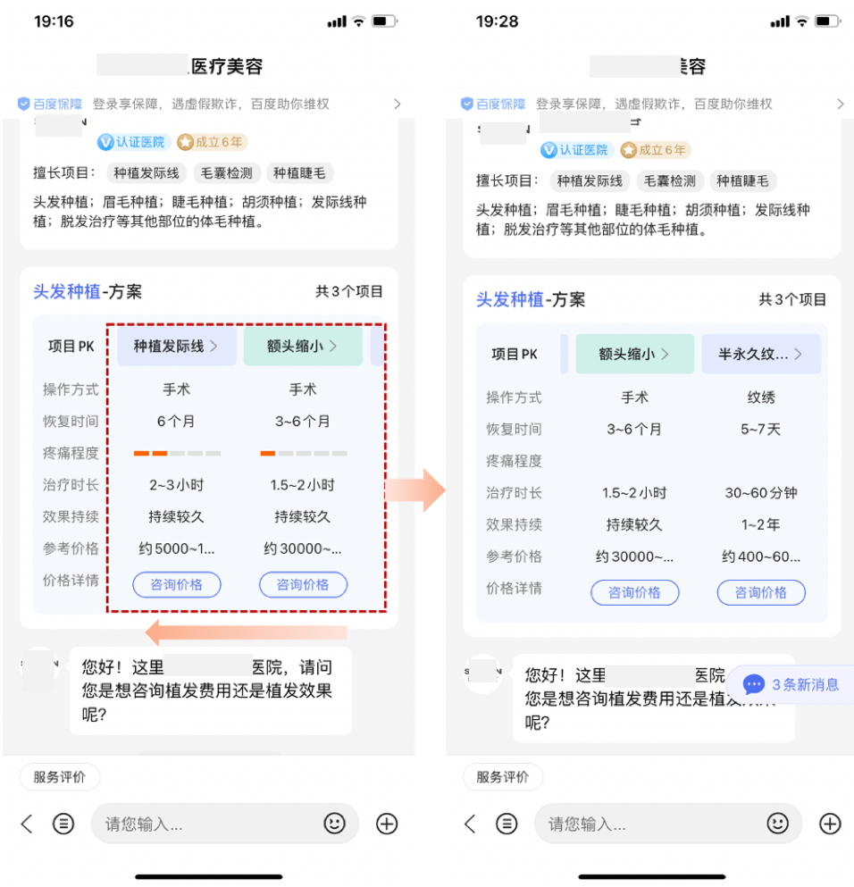 3)医美咨询页-推荐项目卡与医美咨询页-推荐方案卡互斥,不同时展现;