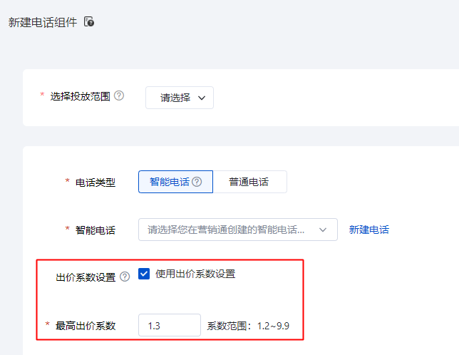 1、6月7日:新建营销类组件将不支持设置出价系数(下图红框示意内容将下线);