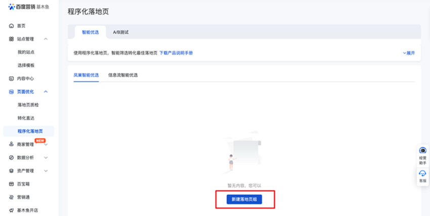 功能入口:页面优化-程序化落地页-智能优选-凤巢智能优选