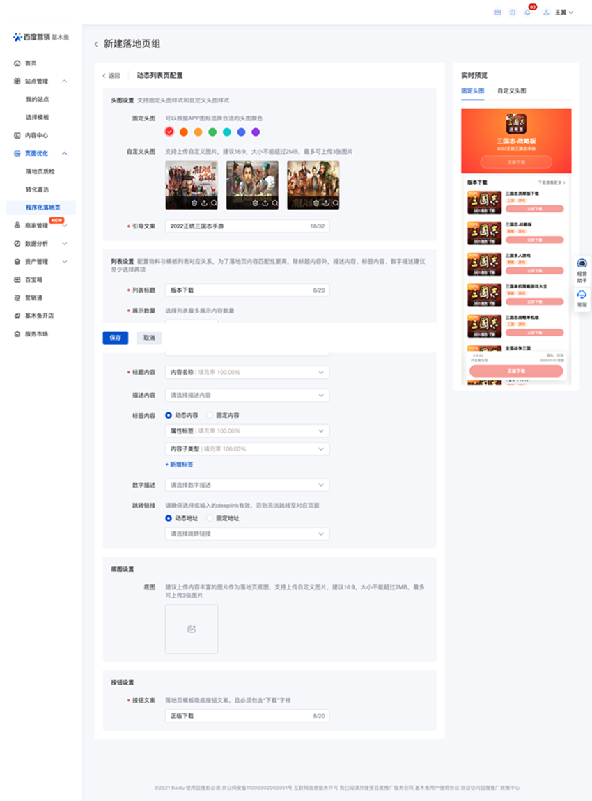 客户可通过基木鱼平台,实现自主搜索程序化落地页组搭建与投放