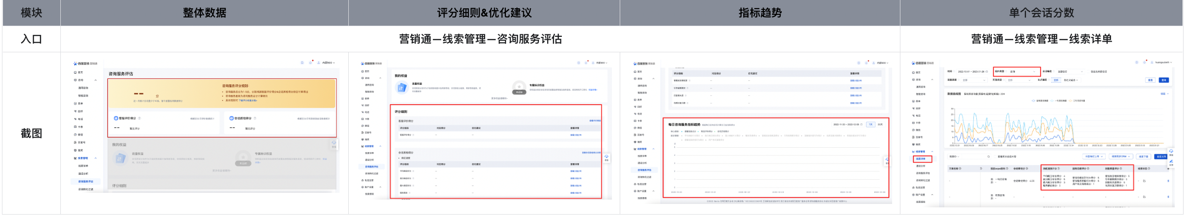 1、咨询服务评估整体数据包括【咨询服务总分】、【咨询服务星级】、【客服评价得分】、【会话质检得分】