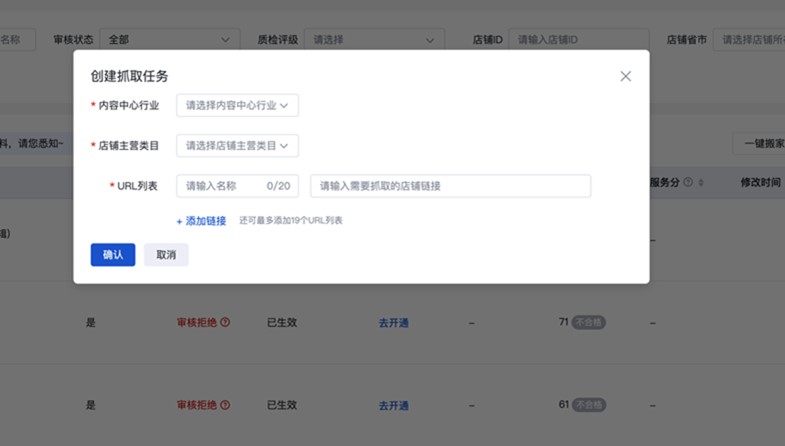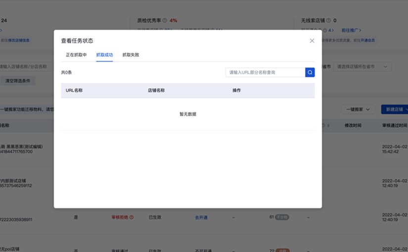 - 支持查看任务状态,并可对抓取失败店铺重新抓取