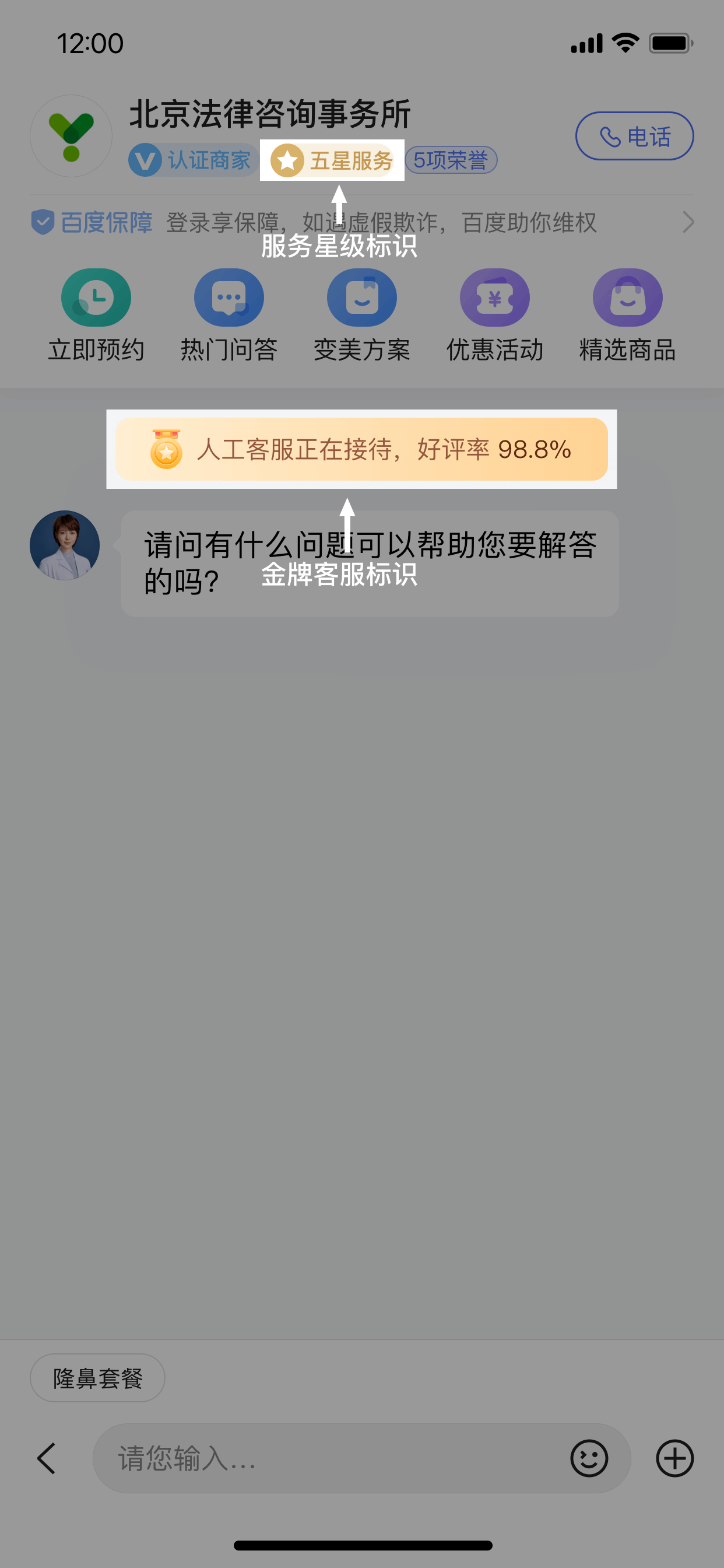 在使用智能客服后,咨询会话质检分数将有明显提升,在前台展示“四/五星服务”&“金牌客服“标识,进一步提升转化率;此外,对于商家等级也有正向影响,有更大机会拿到奖优流量扶持;(备注:金牌客服标识需保证账户近30天客服评价量 > 10)