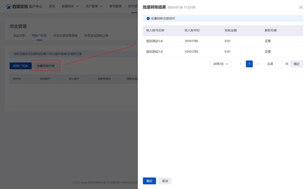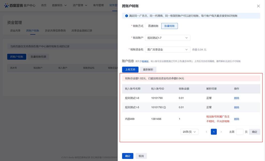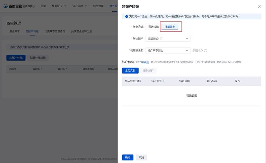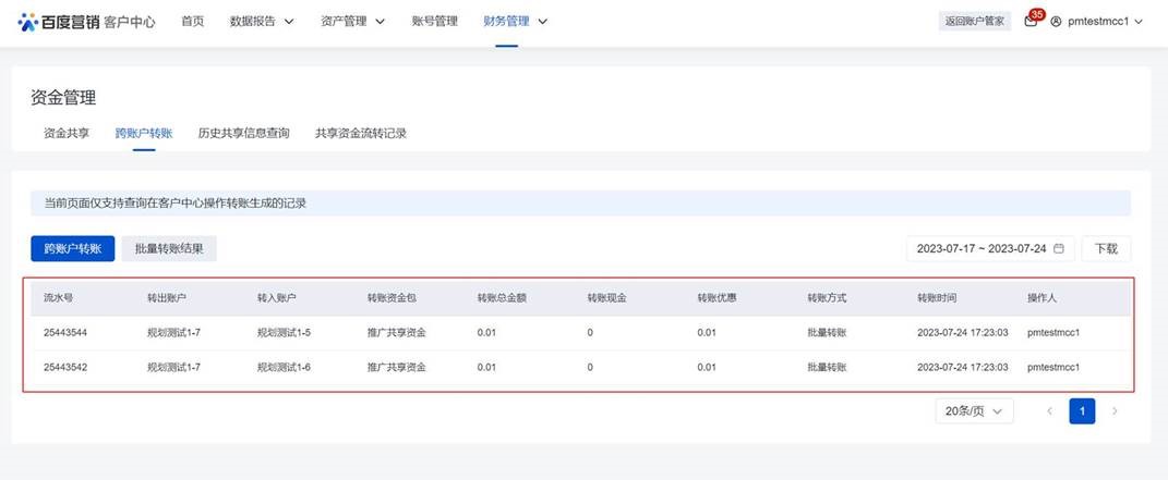部分广告主和代理商在操作账户充值时,习惯将资金统一打款至某个账户后,再依据实际投放需求将资金转账到其他账户。