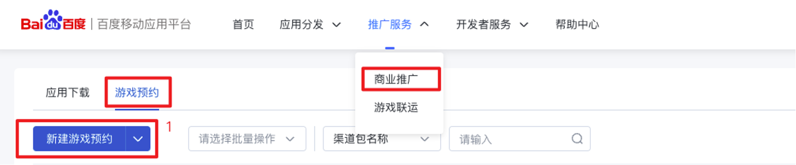 2.1 应用包准备:百度移动应用平台-推广服务-商业推广-游戏预约