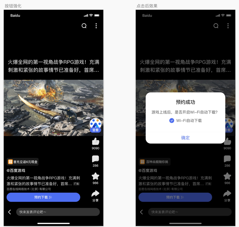 - 吸睛的预约展现样式,助力大推:百度APP信息流新增预约广告样式,缩短转化路径