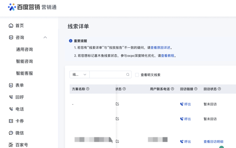 2)识别线索范围:①智能电话线索 ②使用聆音回访的表单/咨询线索