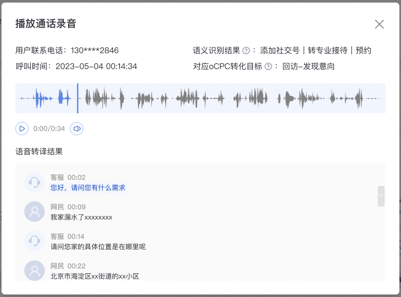 为帮助客户优化线索质量,本次聆音升级,基于客户与用户的实际通话录音识别形成标签,支持自动识别深度转化线索,作用于oCPC模型长期提升客户线索质量。