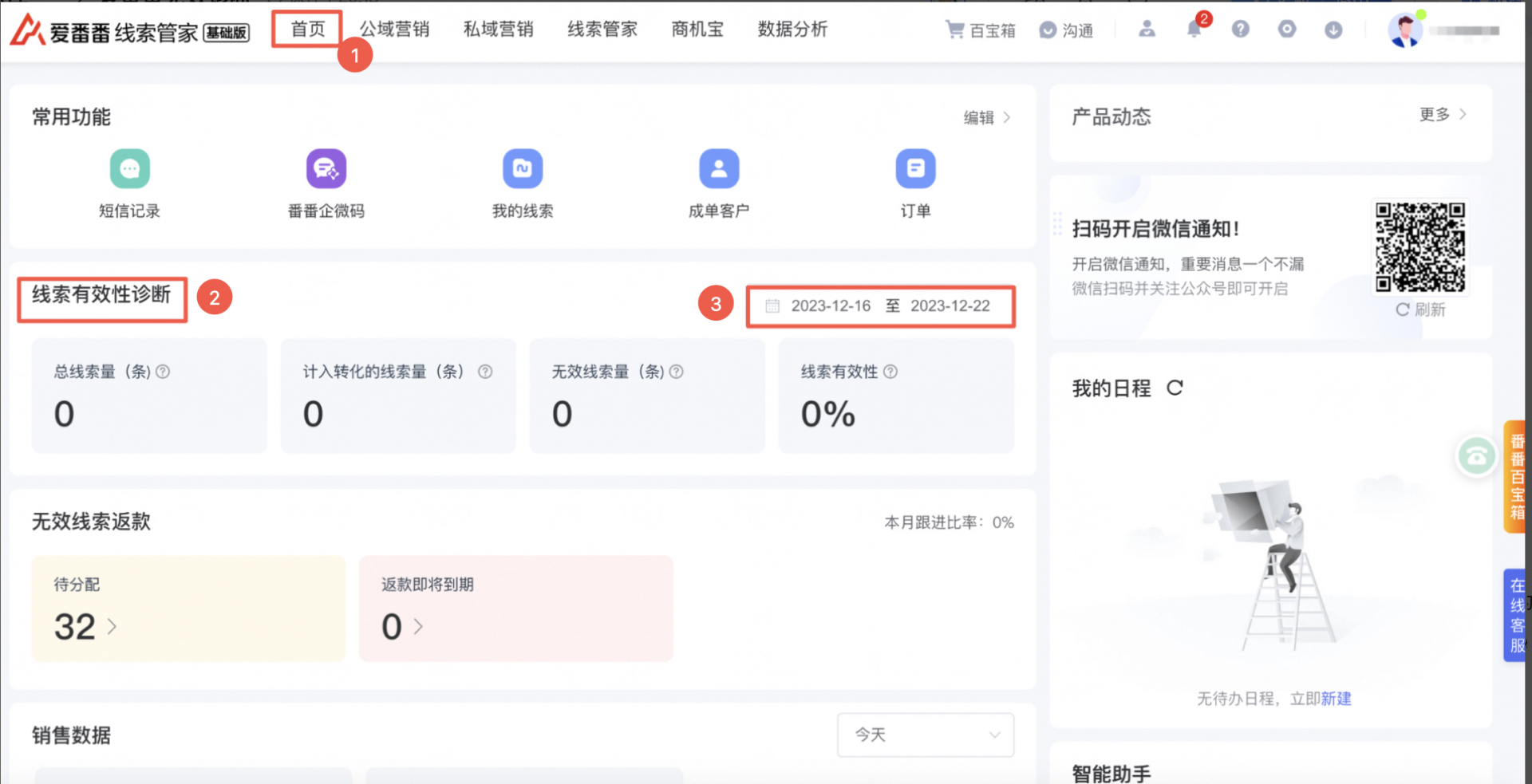 入口路径:您可以进入爱番番线索管家——点击外围知名博鱼官网——选择【线索有效性诊断】,并可以自定义时间查看账户无效率数据