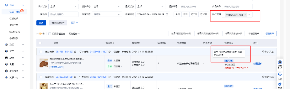 商家可在【商家后台】-【售后】-【售后工作台】查看售后单对应的物流拦截进展及状态。