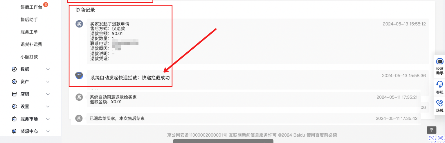 如何确定是否是快递拦截的退款订单,可以查看协商记录来确定。