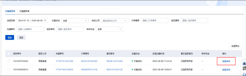 商家可在【商家后台】-【物流】-【物流拦截服务】模块查看拦截服务商和拦截服务单明细数据。