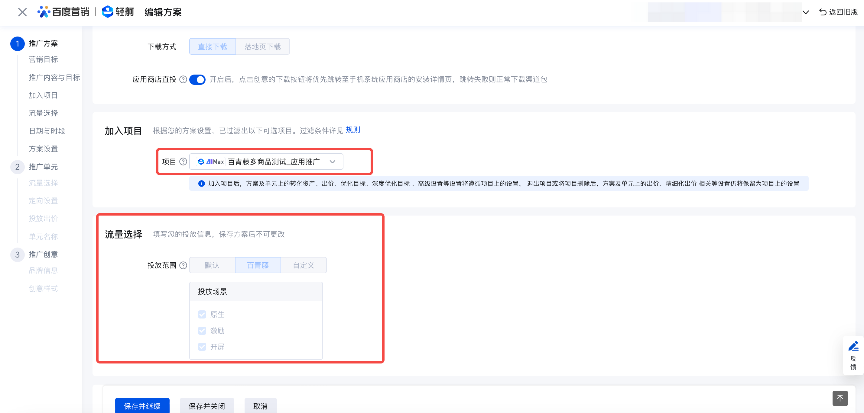 1、主要升级点:在信息流应用推广营销目标的四级创编流程下,新增支持百青藤流量投放mdpa多商品广告投放。