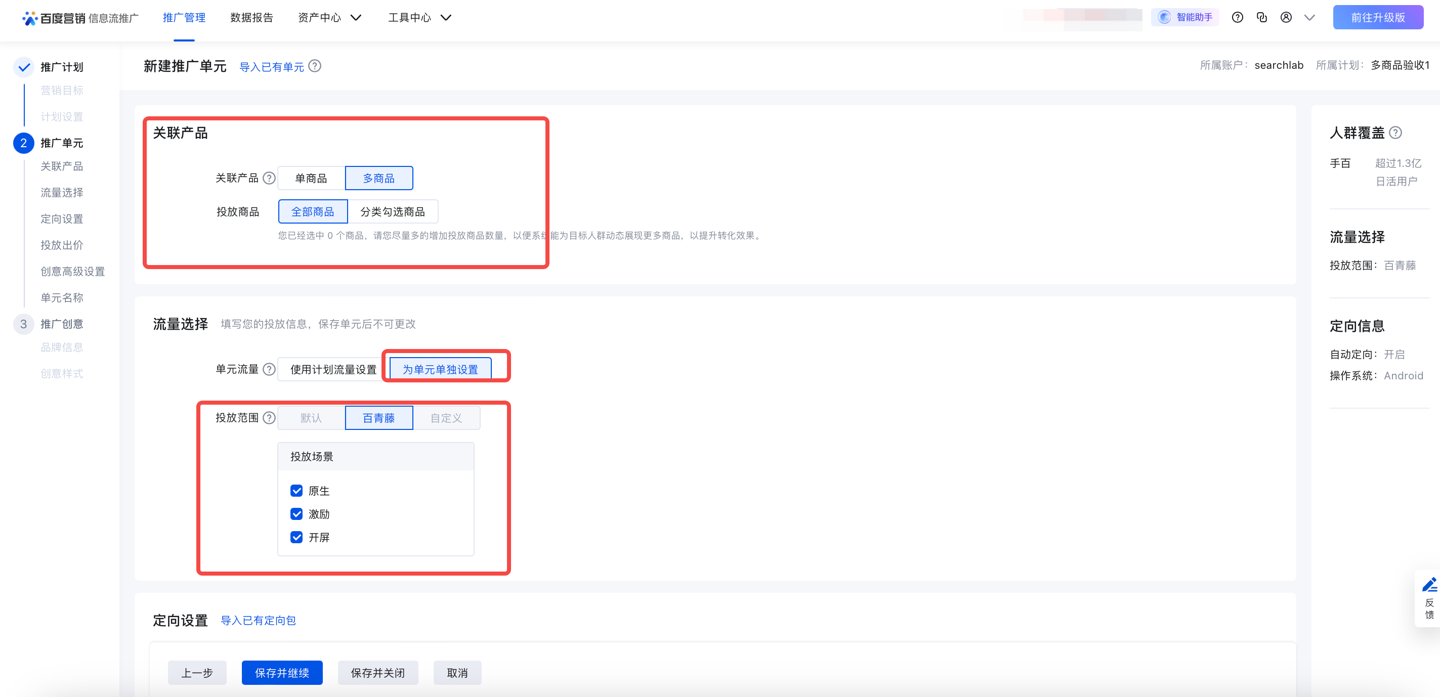 ③单元层级:单元层级支持选择多商品,同时创意高级设置支持自动创意优化(详见下方:主要升级点2)。