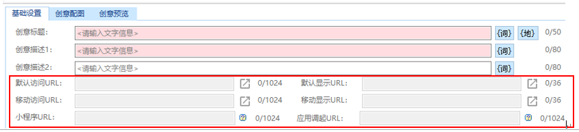 关键词层级:无需填写访问url、移动访问url、小程序url、应用调起url