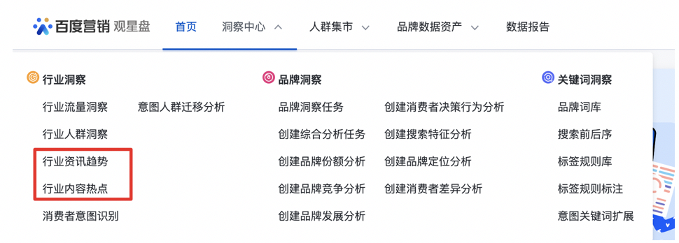a)入口:洞察中心-行业洞察-行业资讯趋势 & 洞察中心-行业洞察-行业内容热点