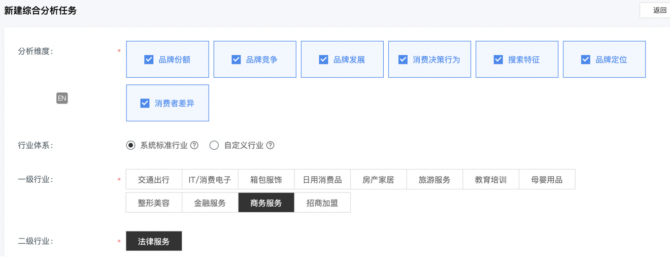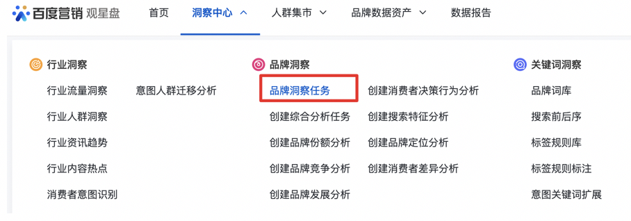 a)入口:洞察中心-品牌洞察-品牌洞察任务-新建品牌洞察任务