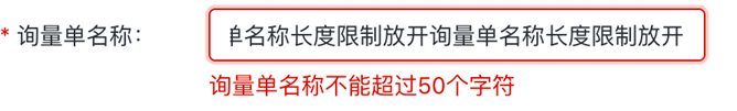 原询量单名称长度限制在20字符,现开放至50个汉字字符;