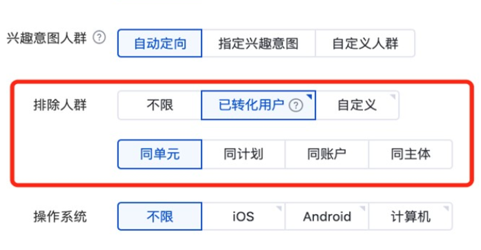 百度信息流推广-排除人群功能:新增同主体排除已转化用户